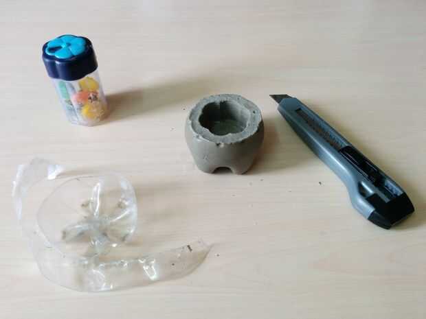 Retire con cuidado el envase interno. La vaselina o el aceite se utiliza para facilitar la extracción de los contenedores de cemento.