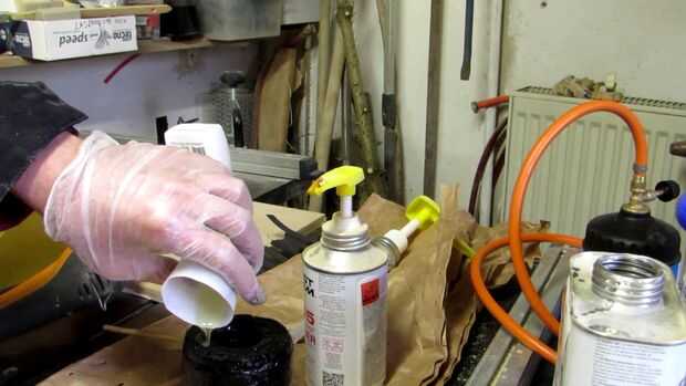 Aunque el sostenedor del tealight actualmente se ve mejor, también es un asunto bastante delicado, con carbón de leña viene de fácilmente y, generalmente, de una manera no deseada. Así que elegí recubrir con resina epoxi, mezclados según las instrucciones del fabricante.