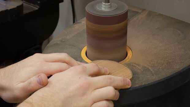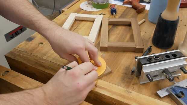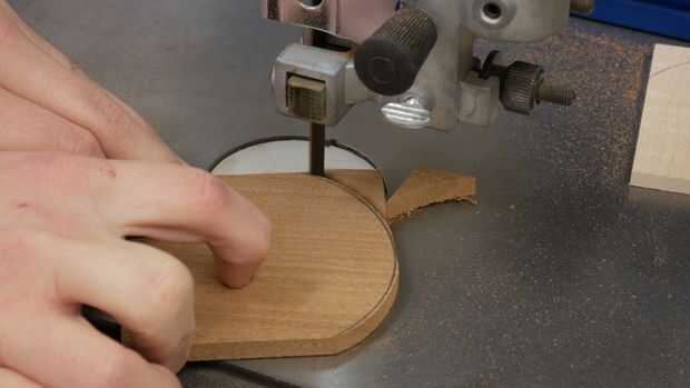 Mientras el pegamento seca en los marcos de cortar una curva en la plataforma delantera. Utilicé una pieza redonda de plástico que tenía en mi tienda como plantilla. Cortar la curva en la sierra y me alisó hacia fuera en la lijadora de husillo.