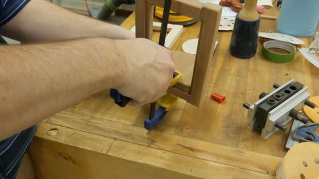 Después de redondear los bordes, yo pegado a la plataforma a la estructura y amarrarla para colocar.