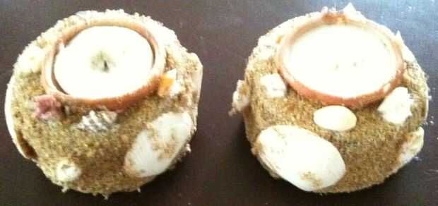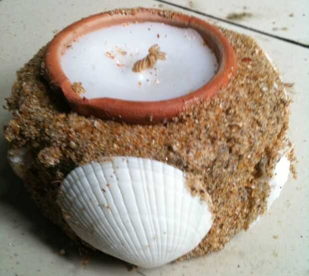 podría ahora pegamento caliente algunas cáscaras y luego aplicar pegamento blanco todo el espacio en blanco y luego rodar arena o triturado hasta conchas con arena...