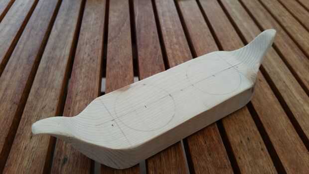 Entonces vio que la forma de la madera. Archivo y su góndola de papel de lija.