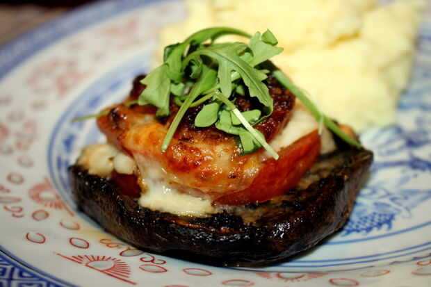 la carnosidad de Hongos portobello hace que esta pizza de molde sin corteza tan satisfactorio! Ideal como aperitivo sin culpa o snack para una dieta baja en carbohidratos o simplemente para agregar vegetales a su dieta.Me encanta lácteos pero leche