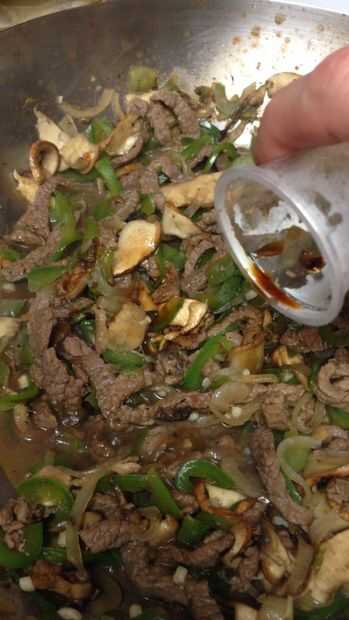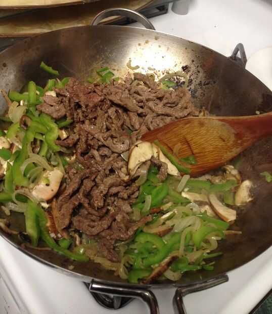 Añadir la carne de vacuno a la cacerola, revolver bien y luego retire la sartén del calor.