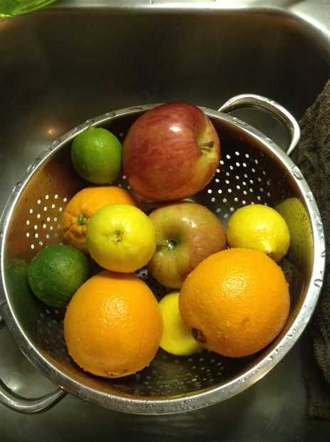 Lave todas las frutas completamente. Esto limpiará la piel exterior de cualquier suciedad, mugre, pesticidas o cualquier otro elemento no deseado en la sangría.