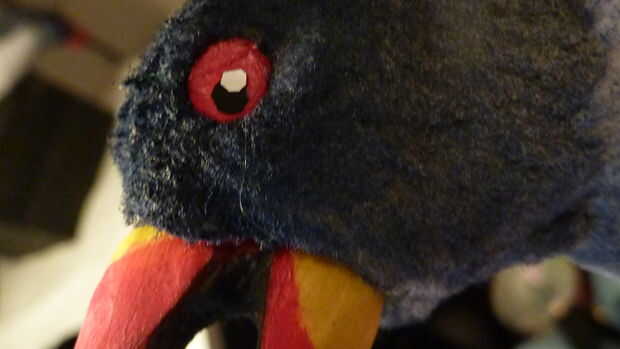 -Pájaro de alas y ojos cortan de goma hoja y pintada a mano