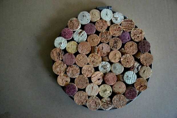 Por alguna razón, hogares de la mayoría amantes de vino tienen un tarro enorme de corchos, guardado "para algún proyecto más tarde." No queremos tirarlos lejos, pero a menudo simplemente sentarse y recoge el polvo. ¿Por qué no busto les para este proyecto? Dependiendo del tamaño, usted puede ir de principio a fin en menos de media hora. Este tamaño funciona muy bien como un soporte o un pinboard pequeño colgante, y tamaños más pequeños se pueden utilizar como prácticos posavasos!