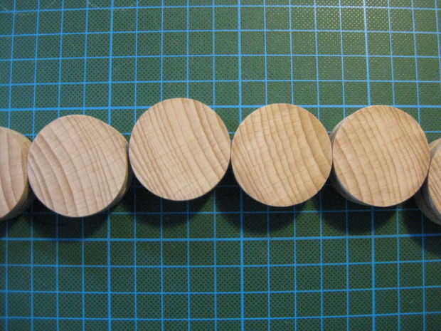 Ahora tienes que pegar las piezas que se conectarán a tu parte superior e inferior a los discos de madera.