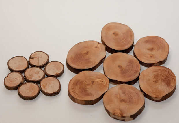 este proyecto trivet combina dos de mis tendencias favoritas: madera woodsy y geometría. Fácil de hacer y de buen aspecto, esto haría que el regalo de la anfitriona perfecta!Paso 1: Lo que necesitará - 10 discos de rama de árbol/rodajas aproximadamen