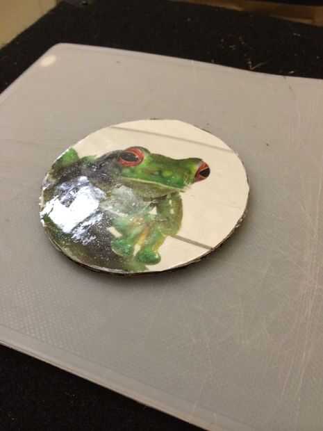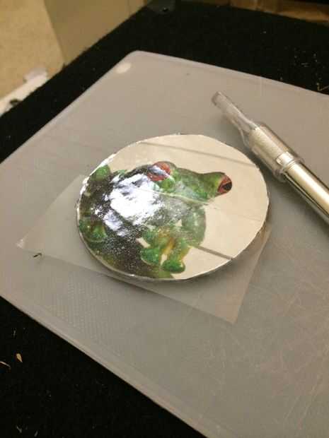Cortar un trozo de cinta más larga que el diámetro de la montaña y recostarla, que cubre la mitad superior de la montaña. Alise cualquier burbuja. Dé vuelta a la montaña. ASEGÚRESE DE QUE TENER CINTA COLGANDO FUERA DEL BORDE COMO EN LA FOTO.