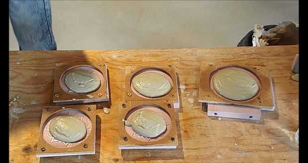 Mejor manera de conocer la consistencia adecuada siempre va a ser con un poco de experiencia. Para este vertido tendrá que ser un poco más delgado. Debe bastante fácilmente el flujo en el molde pero siendo lo suficientemente gruesa como para mantener su forma como un pequeño montículo cuando se vierte un poco en el molde.