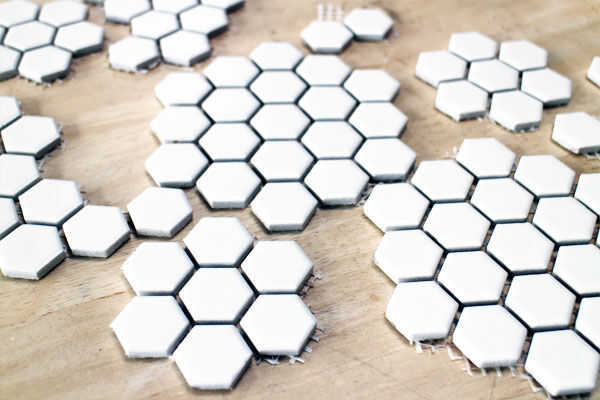 Todo lo que necesitas para estos posavasos son los azulejos pequeños conectados a una red tejida y tijeras. He encontrado la red azulejo en chatarra en San Francisco. Primero limpié los azulejos y entonces yo cortar en formas. He intentado de diferentes formas. Si usted quiere hacer tanto posavasos como sea posible de una red de azulejos, es una buena idea para que los azulejos de la marca que vas a cortar con un lápiz antes de empezar a cortar.