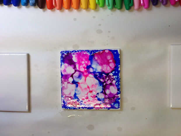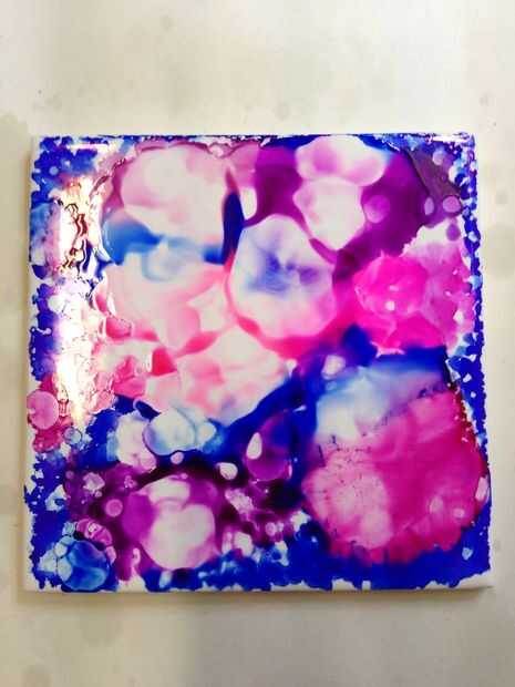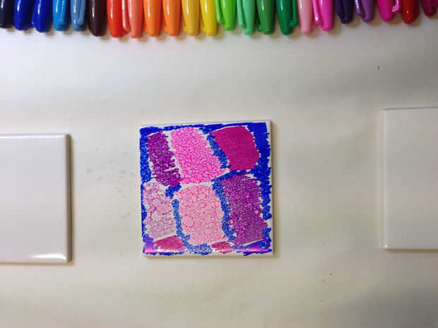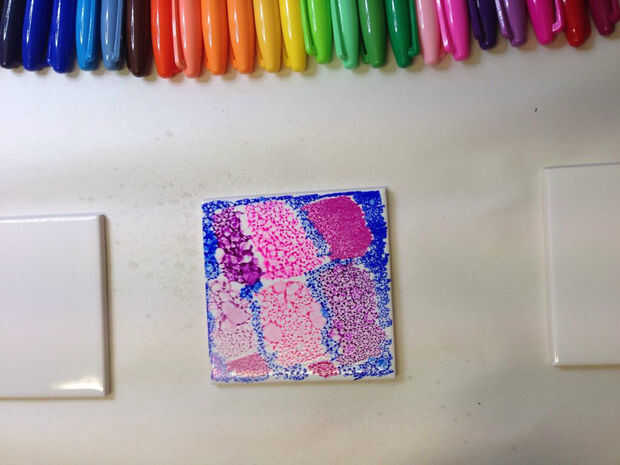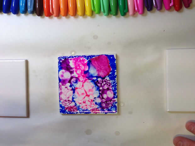 El alcohol se separó y mezclar las tintas marcador para crear impresionantes patrones abstractos. Puede usar un gotero para mejorar los patrones más. Es mejor usar pequeñas cantidades de alcohol y añadir más de una vez seco si quieres - si se añaden grandes cantidades a la vez terminará con los áreas y espacios sin tinta, o bien toda la tinta mezclada totalmente.