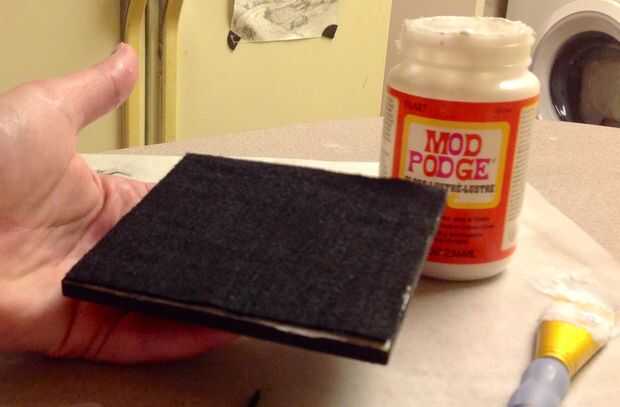 Corte negro (o color de elección) fieltro piezas para adaptarse a la parte posterior de la baldosa antes de la mano y colóquelo con cuidado en la zona de pegado. Asegúrese de que presione el fieltro en el pegamento entre los surcos para asegurarse de que está conectado completamente.