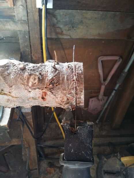 Después de que se eliminan las ramas cortada su registro manejable un par pies de largo o menos. Ahora quieres poner discos de corte 1 pulgada de espesor (o lo que quiera) el extremo de su registro. Había asegurado el registro en un vicio y usar mi sierra alternativa. La mayor parte podía cortar bastante uniformemente a mano alzada. Un grande mitre o brazo radial sierra sería más fácil y más precisa pero sólo tiene que utilizar lo que tienes.