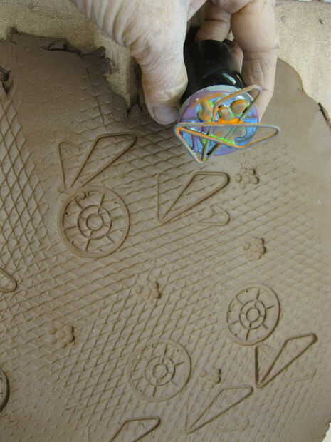 esta es una técnica simple.  Hacer tu pieza de barro, fuego, vidrio en la parte inferior y disparar otra vez.Paso 1: fuentes de - Clay-Esmalte (opcional)-Horno-Vidrio: Rotos fragmentos de vidrio de colores diferentes.  Mar de vidrio funciona mejor (p