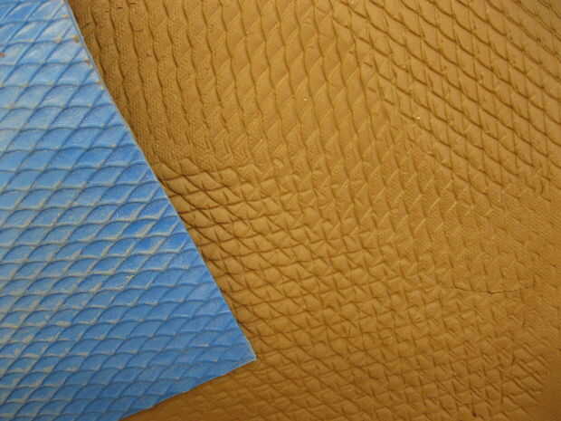 En primer lugar elegí una estera de goma texturada para rodar un patrón general en la arcilla