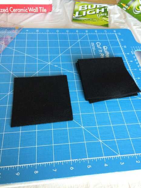 Me corte el cartón y fieltro cuadrados para ser exactamente de 4 1/8 pulgadas cuadrado. Me siento como ese extra 1/8 pulgada realmente hizo que la montaña a la montaña en lugar de un azulejo con un cartón de cerveza en ella.