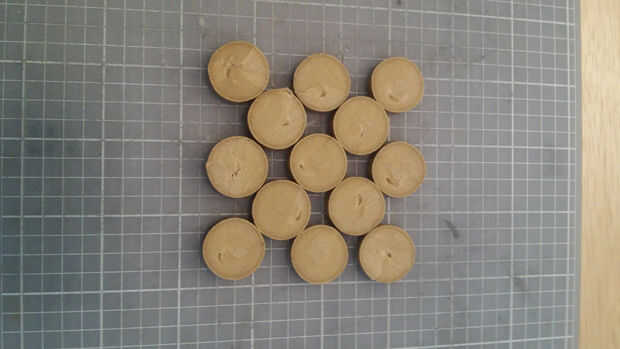 Una vez que tuve todas las piezas que quería que probé diferentes diseños para arreglar en un patrón fresco. Después de varios intentos colocó en este cuadrado. Algunos patrones requieren más o menos trozos de corcho.