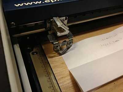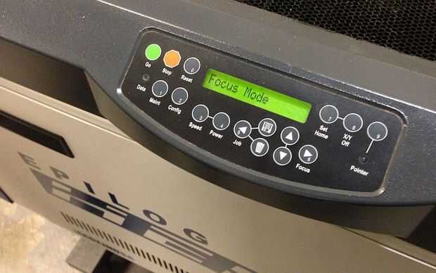 Coloque el material a cortar en la red. Tire la cabeza de espejo de corte láser para la esquina superior izquierda de su movimiento y presione el botón de inicio de sistema. Luego presione el botón de enfoque, carga la cabeza de foco y utilice el arriba y abajo flechas en el tablero de control para mover el plano de su material, tal que una sola hoja de papel apenas cabrán entre el foco y el material. Retire la cabeza de foco y el pedazo de papel. Presione el botón de reset para volver el espejo a la posición inicial.
