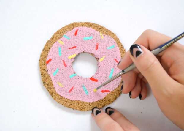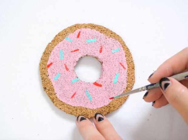 Utilizando varios colores de pintura, añadir sprinkles en la cima de su montaña de donut. La forma más sencilla de hacerlo es utilizar un pincel fino y dibujar líneas cortas.