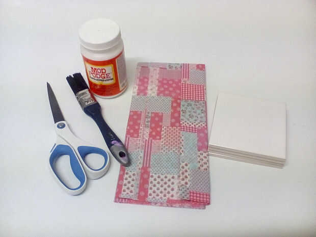 • Papel de seda estampado de su elección (recogí este patrón de patchwork en Hobbycraft en el Reino Unido)