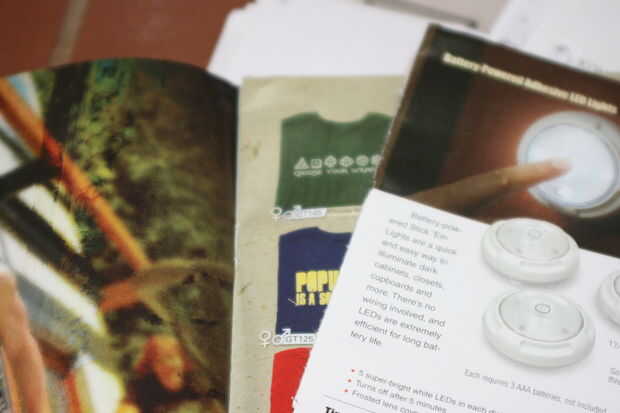 Recogí un montón de papel alrededor de 25 alto y puse el papel de la revista brillante en la parte superior. Puse el papel brillante en la parte superior, porque sentí que absorba el líquido mejor que el papel de computadora tradicional o periódico. Pero por otra parte, es su elección. Si su grapadora no puede manejar 25 piezas, sacar algunas piezas lo que puede.