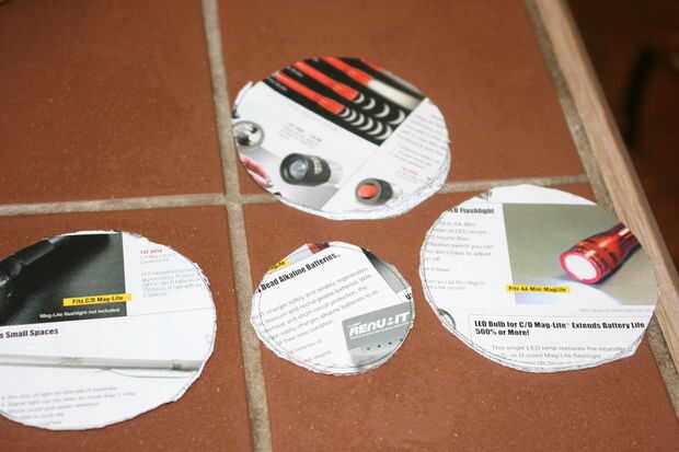 Comenzar cortando los círculos. Toma tus tijeras fuertes para esto y una vez que se corta el círculo hacia fuera, tomar pequeñas tijeras y recortar los bordes para que queden aún.