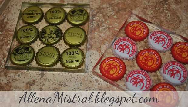 tengo una leve obsesión con Pinterest, así después de ver un juego de posavasos de tapa de botella que parecía que podrían rayar la mesa, le dije, "Puedo hacerlo mejor!" Bueno, con un poco de ayuda del destinatario de este regalo y dos intentos fallidos en otras opciones, elegí bastidor de la resina para hacer estos posavasos super impresionantes. Una gran manera de mostrar al hombre en su vida que usted se preocupa, estos divertidos posavasos son fáciles de completar, en unos 4 días (suponiendo que sólo tiene 1 molde) y no toman mucho tiempo activo de su parte.