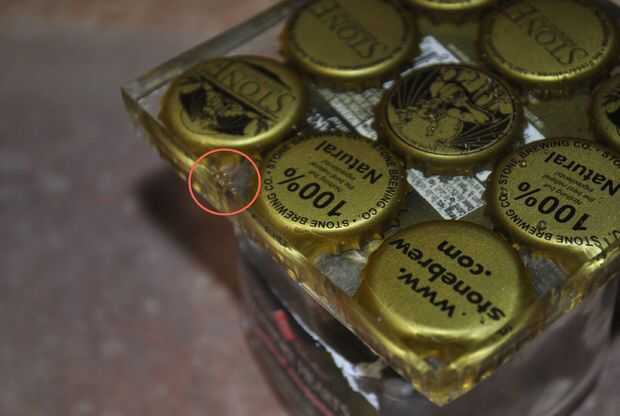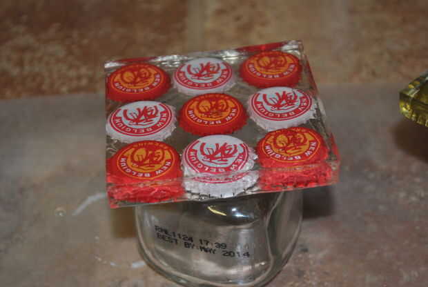Para hacer tus posavasos lisos, utilice su papel de lija para eliminar las burbujas o imperfecciones (también conocido como el menisco que se ha formado alrededor del borde superior de la montaña) que aparecía durante el vertido inicial. Utilicé papel de arena de grano 220. No es muy importante lo que arena usa, pero no voy cualquier courser que un grano 200. Todo lo que quieras es eliminar las burbujas y no hacer rayas que son demasiado profundas. Una vez que has lijado las burbujas e imperfecciones hacia fuera, lavar la montaña en agua para quitar todo el polvo de resina. Asegúrese de que esté limpio. El polvo en la montaña Haz incrustará en a la montaña después de poner la siguiente capa de resina y hará inútil este paso. Después de secar completamente los prácticos de Costa, coloque un papel sobre la superficie de trabajo para mantenerla limpia. En la parte superior del papel, coloque su práctico de costa en la parte superior del objeto mencionado anteriormente (véase el cuadro otra vez). Mezclar otra onza de resina utilizando sobre doble el catalizador que usaste para la base de la montaña (USA 10 gotas de catalizador por 1 onza de resina). Vierta una capa delgada en la cima de la montaña. Puede alisar hacia fuera a los bordes con su agitador. Una vez que has hecho una bonita capa en la parte superior, cubra los lados utilizando el agitador para colocar la resina en los lados de la montaña. Comenzará a gotear, razón por la cual se cubre la superficie de trabajo y utiliza algo para elevar el posavasos. Después de unos 5 minutos, utilizar un palito o cualquier cosa que usted puede lanzar lejos para quitar los granos de la resina que se agruparon en la parte inferior de la montaña en cada uno de los 4 lados. Ahora han eliminado la mayoría de sus imperfecciones. Fotos 4 y 5 de esta etapa muestran burbujas en el lado de la montaña de piedra y su aparición después de la primera capa de resina de acabado. Es probable que voy a tener que repetir este paso (al menos para eso Montaña), pero definitivamente es una mejora importante.