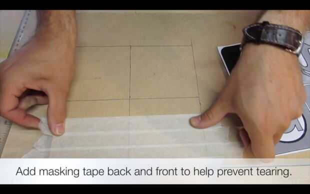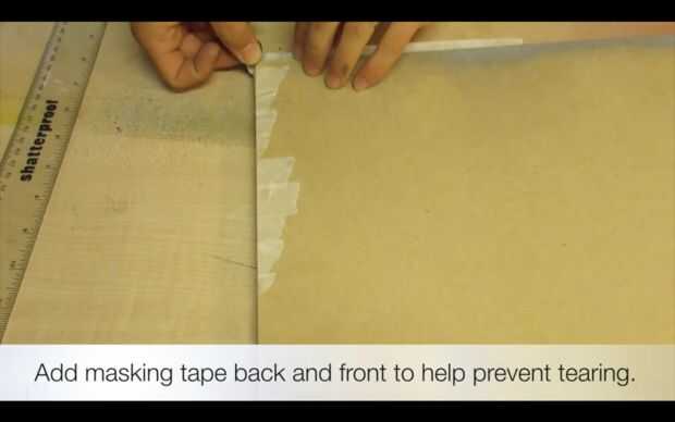 Agregar líneas superpuestas de cinta de enmascarar/pintor lo suficiente para cubrir el área tanto frente como detrás de la madera.