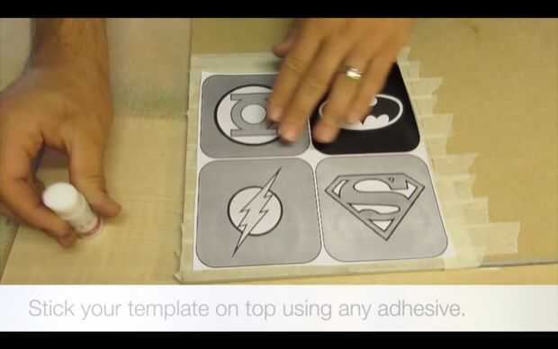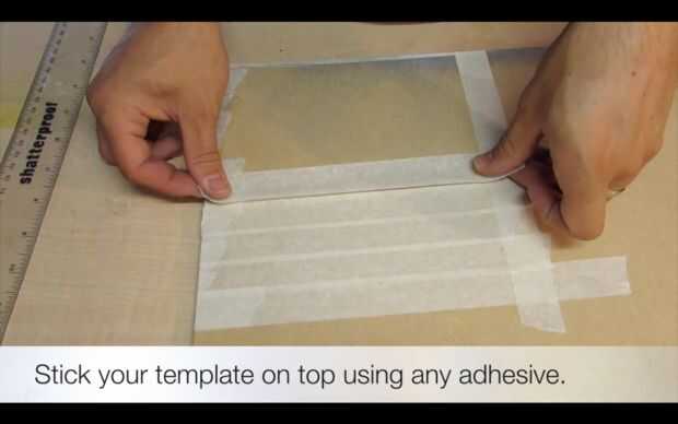 Utilizar su pegamento pegajoso palo a palo las plantillas sobre el área con cinta.