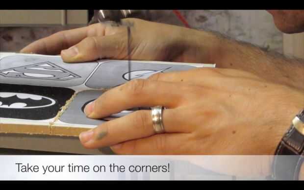 Medir a un áspero cuadrado en la madera que se acomode a tus posavasos.