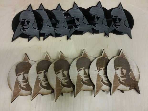 He utilizado Illustrator para el diseño de una montaña con Spock de Leonard Nimoy de Star Trek: la serie Original. Grabé esto en madera y acrílico. Este proyecto es un poco más viejo, así que lamentablemente, no tengo muchas fotos.