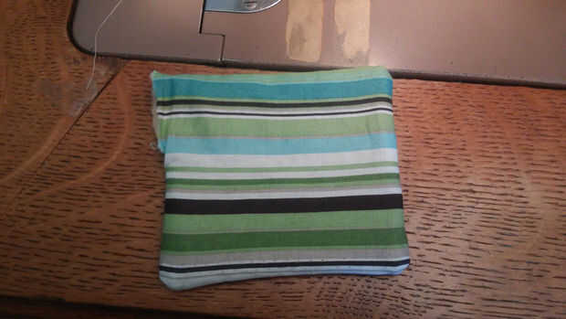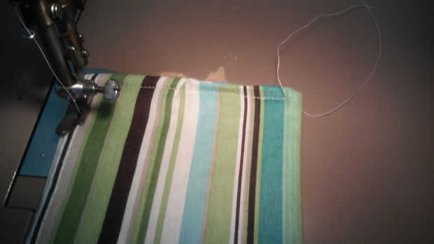 Una vez doblada derecha a ha añadido una puntada ajuste al perímetro de la montaña. Esto ayudó a mantener a la tela sobre la entretela y es una manera super fácil para cerrar la parte abierta de la tela.