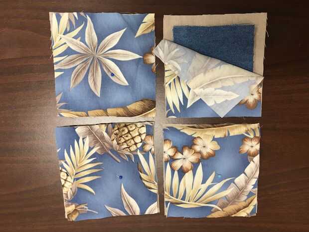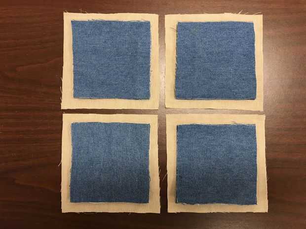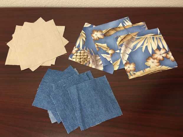 Utilizando el patrón de 4" corte 12 piezas de la denim ligero, 3 para cada montaña.
