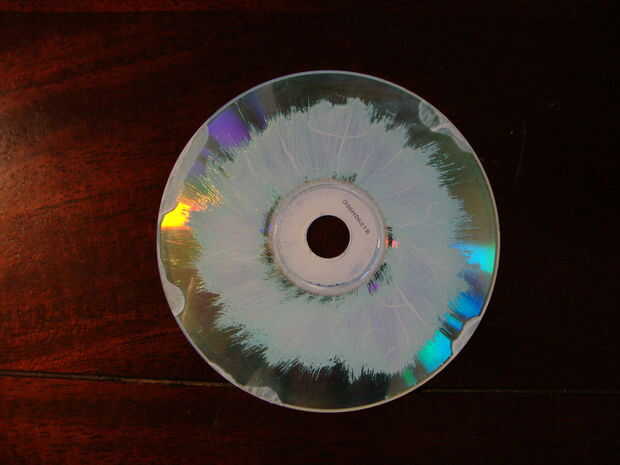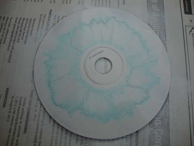 Otra manera usted puede hacer esto es usar alguna laca o spray acrílico en el color de su elección - Utilice este fuera o con buena ventilación y encima bolsas de periódico y basura. Aplique una capa delgada (según instrucciones de la lata de spray) y dejar secar totalmente - se adhiere a la capa brillante y la seco liso, pero cuando está en el plástico se secará en un patrón agrietado (como los esmaltes de uñas). Si utilizas sólo una capa, algunos del color original del CD/DVD sangrará a través en la parte expuesta de plástico.
