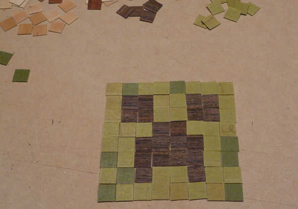 El Internet está inundado de imágenes de Minecraft, así que encontrar adecuados patrones en línea era no hay problema. El desafío fue averiguar que especie de chapas de madera en mi arsenal funcionaría.