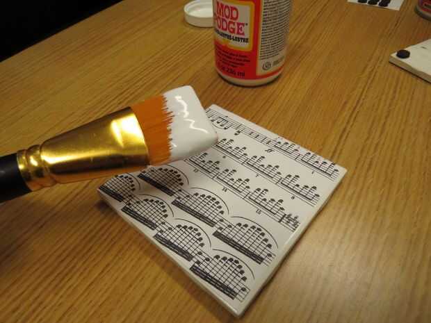 Nota: No se preocupe si el pegamento de Mod Podge aparece grueso y blanco. Se seca claro y brillante!