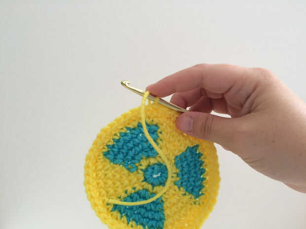 RND 8: Ch 1. SC en la misma calle como unir. SC en cada uno de los siguientes 5 sts. 2 sc en el St. próximo * sc en cada uno de 6 siguiente sts, 2 sc en el siguiente st *. Repetir desde * a * 4 veces más. SC en cada uno de los siguiente 4 sts. Únete con st antideslizante en la parte superior del SC. primer corte amarillo y dibujar la cola a través de lazo para asegurar. (52 sc).
