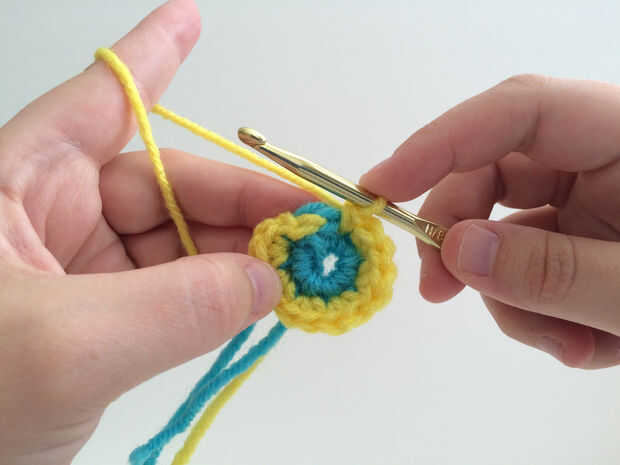 NúmAleat 2: Ch1. cartera negra a lo largo de la parte superior de las sc, 2 sc en el mismo punto como join. 2 sc en cada punto, cambiando a negro en último SC. Únete con st deslizamiento en parte superior de la primera SC. (14 sc)