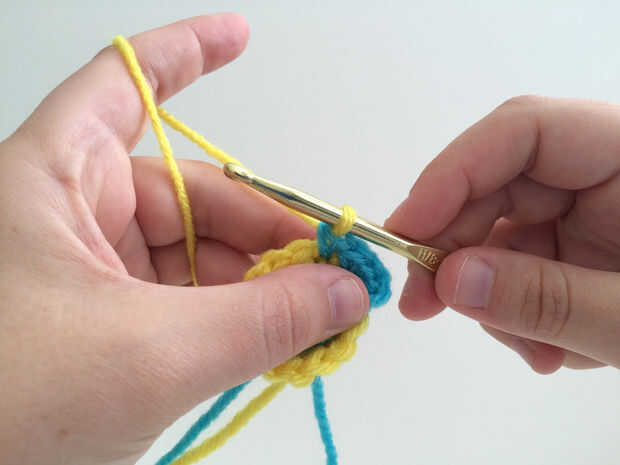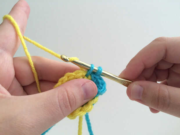 RND 3: Ch 1. Con negro 1 sc en st mismo como join. 2 sc en el siguiente punto, 1 sc en próximo st. Con amarillo, 2 sc en el siguiente punto. 1 sc en el siguiente punto. Con negro, 2 sc en el siguiente punto, 1 sc en cada uno de los siguiente 2 sts. Con amarillo, 1 sc en la misma calle, 1 sc en cada uno de los siguiente 2 sts. Con negro, 1 sc en la misma calle, 1 sc en el siguiente st, 2 sc en el siguiente st. Con amarillo, 1 MP en el siguiente st, 2 sc en st pasado, cambiando a negro en último SC. Únete con st deslizamiento en parte superior de la primera SC. (21 sc).