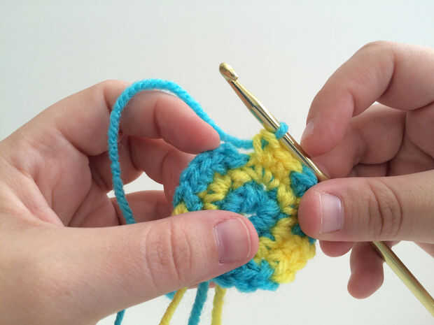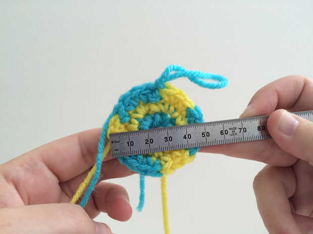 Al final de este rnd, el diámetro del proyecto es unos 5 cm. calibre no es fundamental en este proyecto, pero si el tuyo es demasiado grande, puede probar un gancho más pequeño, o aumentar el tamaño de gancho si el tuyo es demasiado pequeño.