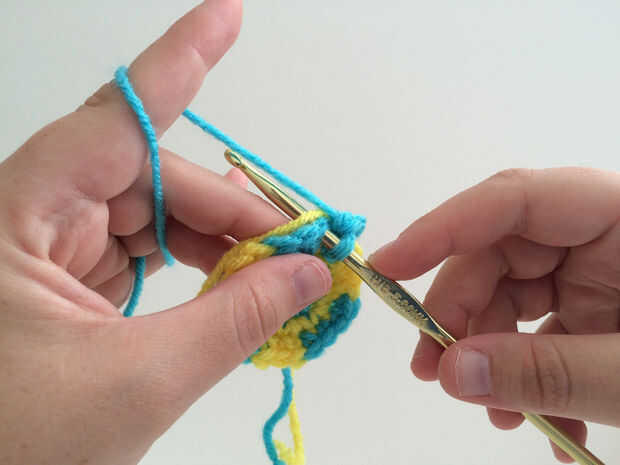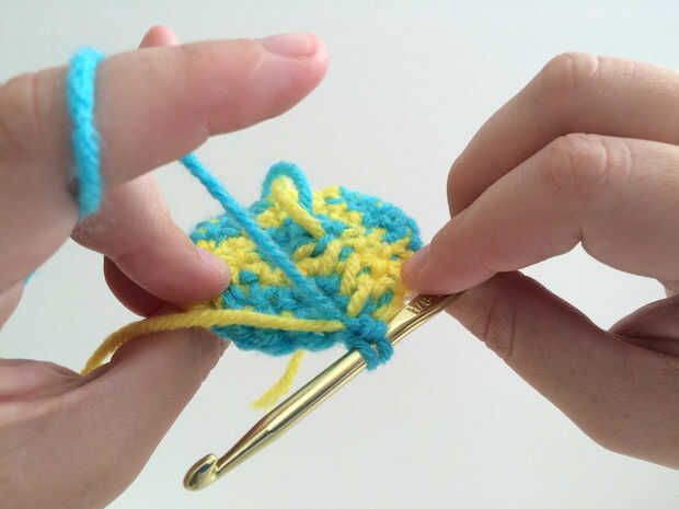 RND 4: Ch 1.*With negro, sc en el mismo punto como join, sc en el siguiente st, 2 sc en el siguiente st, sc en la calle siguiente. Con amarillo, sc en el siguiente st, 2 sc en el siguiente st, sc en st.* siguiente repetir de * a * 2 veces más, cambiando a negro en último SC. Únete con st deslizamiento en parte superior de la primera SC. (27 sc).