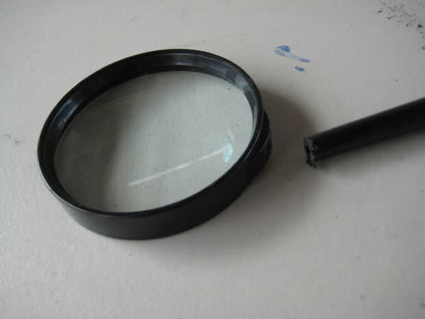 Si tienes una lupa que está hecha de plástico moldeado la manija no se puede desenroscar, y puede quitar el mango por aserrado.