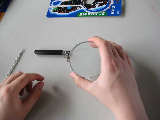 Sugerencia: Puede aumentar la magnificación mediante la colocación de los círculos en las clavijas de plástico para elevarlas un poco fuera de la mesa. No hacerlo porque me pareció más estético sin esto.