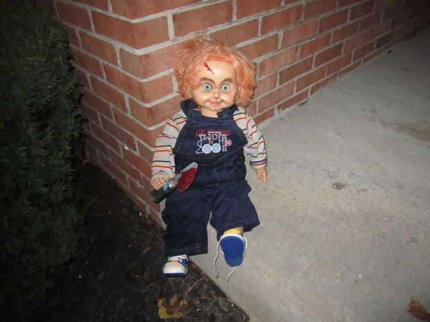 Este pequeño monstruo poseído espantan tu truco o tratamiento cuando cobra vida y habla a ellos. Esconderlo en la esquina de algunos arbustos listos para asustar a víctimas desprevenidas cuando dice 'Hola, quiero jugar' y se ríe como una muñeca poseída en ellos.