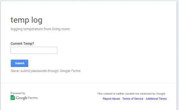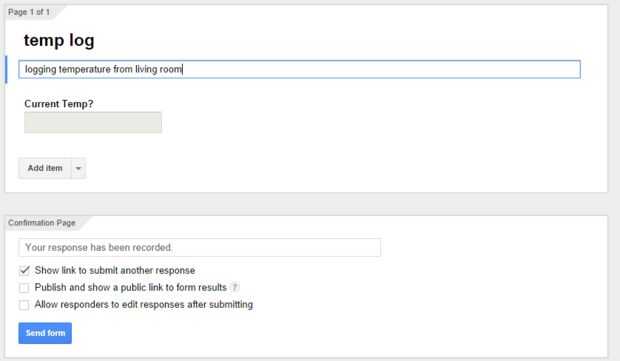 Dentro de google Drive se puede crear una 'forma'. Para hacer este sencillo va a crear una sola pregunta forma de respuesta de texto como se muestra. Cuando es completa, haga clic en enviar formulario.