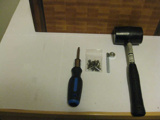 (Si utiliza ojales también necesitará: un sacador del ojal y el "yunque" (estos generalmente vienen con los ojales, pero no siempre) y una de goma o de madera del mazo)