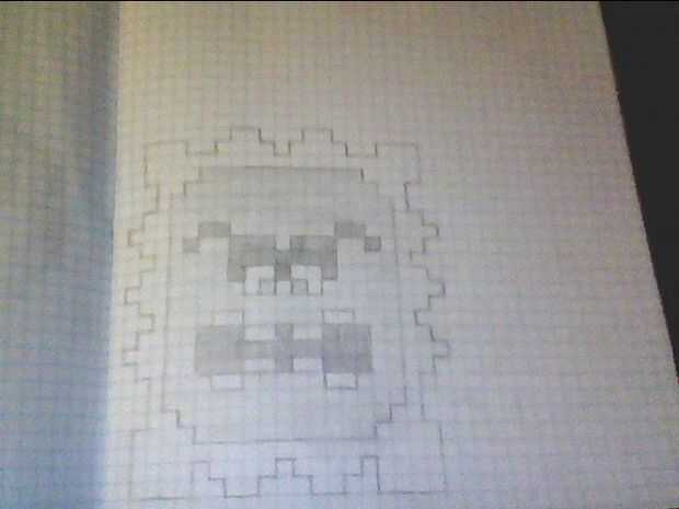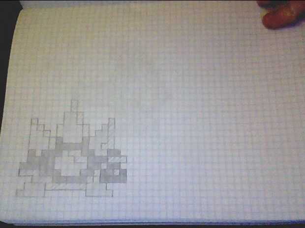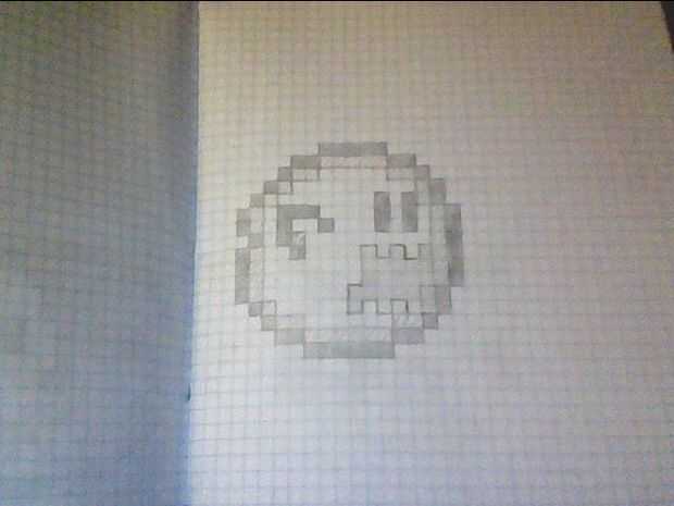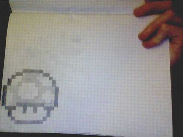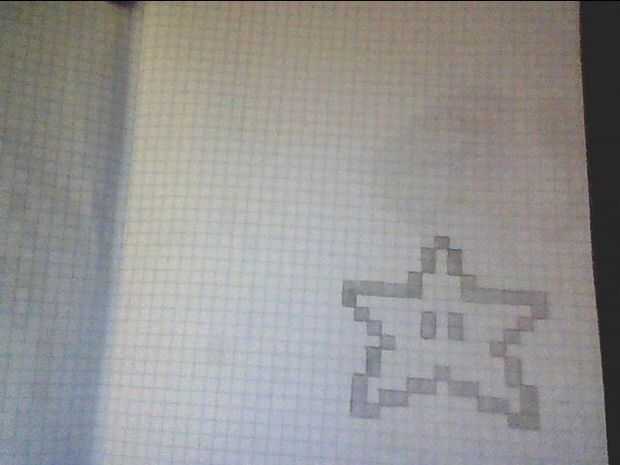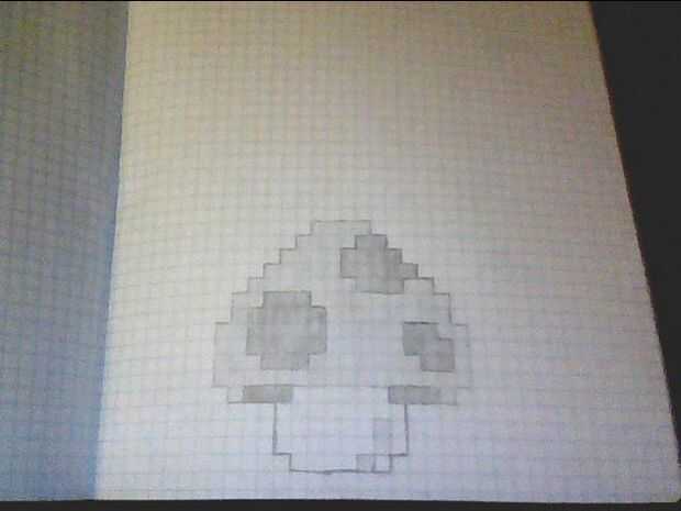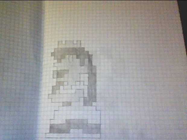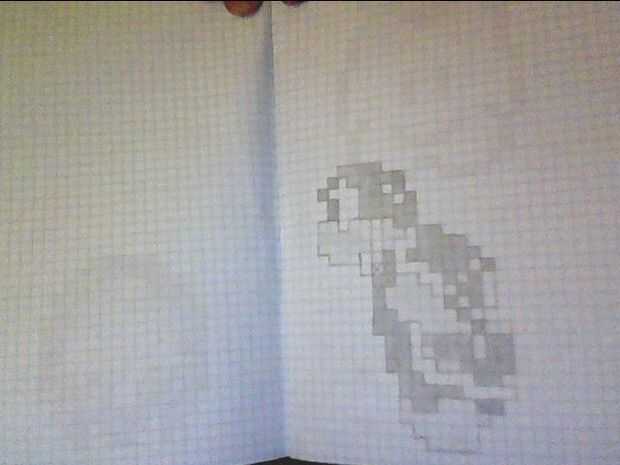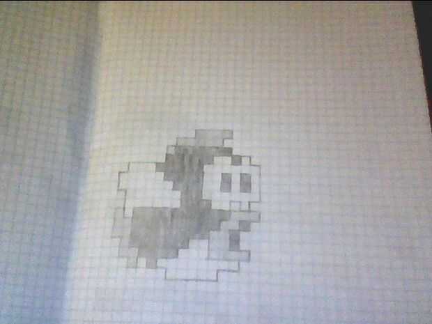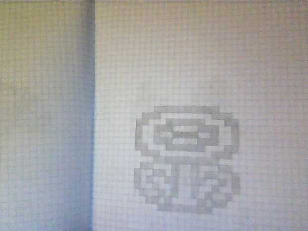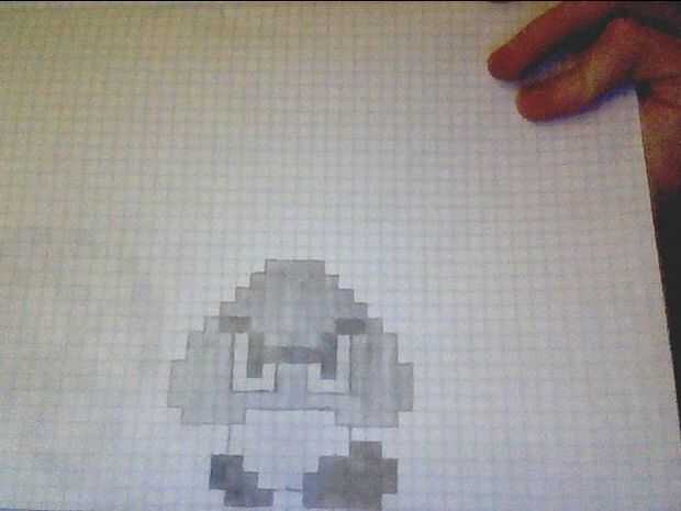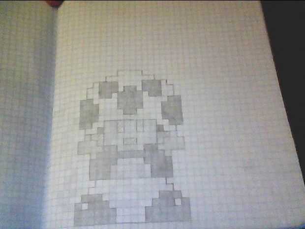 Once you find an image, draw it on graph paper. imágenes de 8 bits son extremadamente fáciles de dibujar en papel cuadriculado. Estas son las cosas que he dibujado. Hasta ahora, todo de Super Mario Bros seguro que oscurecerlo o color, por lo que se puede saber donde diferentes Notas Post-It irá.